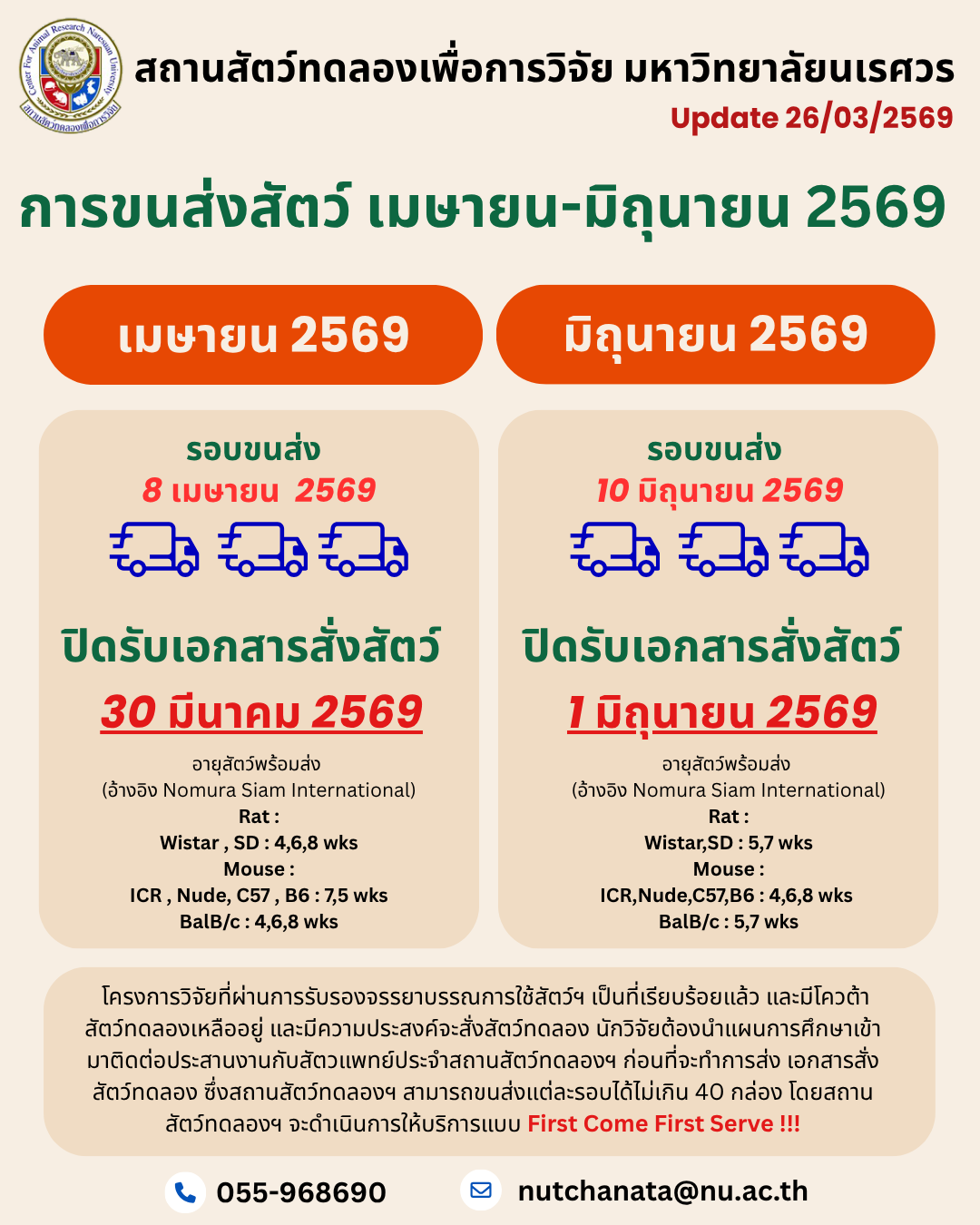 คณะกรรมการ คกส. ม.นเรศวร เข้าตรวจเยี่ยมหน่วยงานผู้ผลิตสัตว์ทดลอง ในกิจกรรม Vendor Audit ณ ศูนย์สัตว์ทดลองแห่งชาติ ม.มหิดล และบริษัท เอ็ม-เคลีย ไบโอรีซอร์ส จำกัด (6/16/2025)
