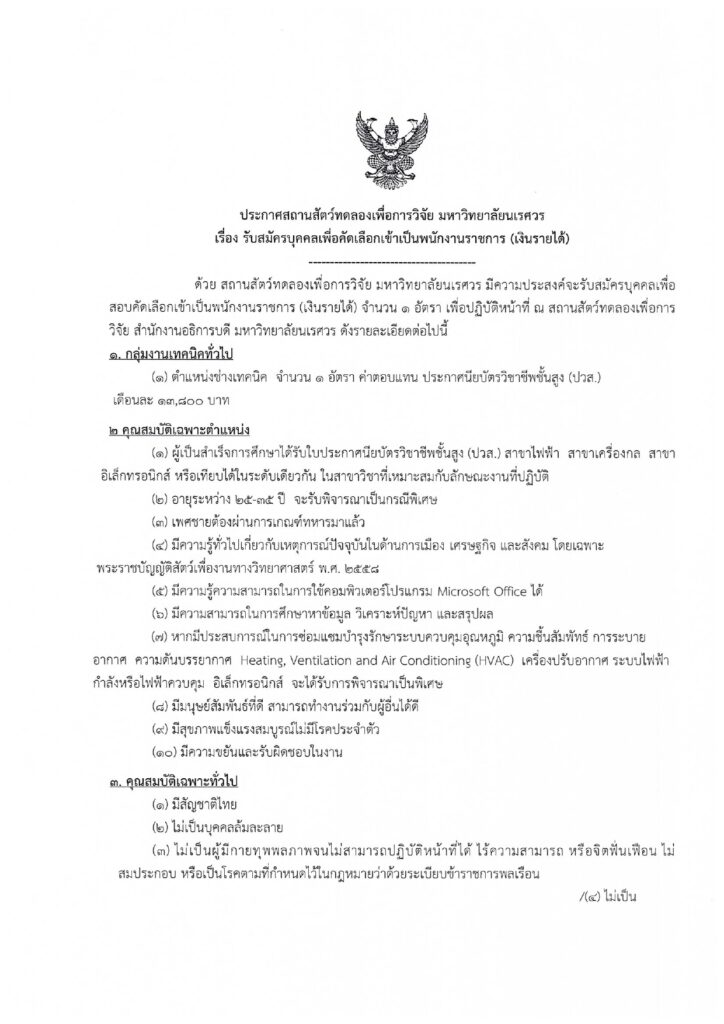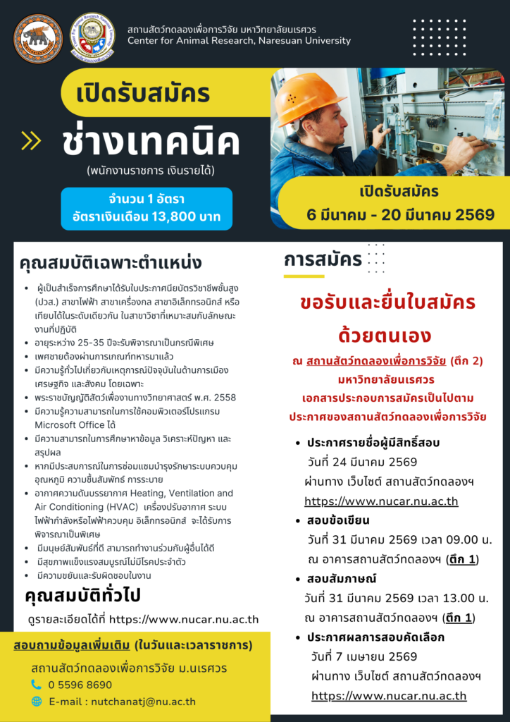 • ประกาศรายชื่อผู้มีสิทธิ์สอบ ตำแหน่ง: ช่างเทคนิค (update 24/03/2026)